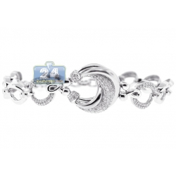 14K White Gold 1.11 ct Diamond Fancy Circle Link Womens Bracelet