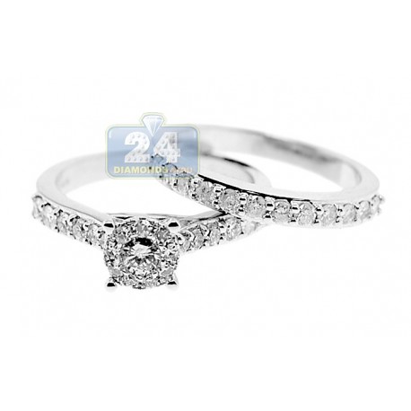 14K White Gold 1.13 ct Diamond Engagement Wedding Rings Set