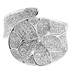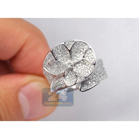 14K White Gold 1.14 ct Diamond Womens Flower Leaf Band Ring