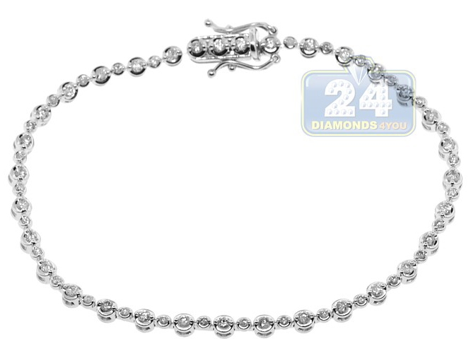 14K White Gold 1.16 ct Diamond Womens Halo Tennis Bracelet