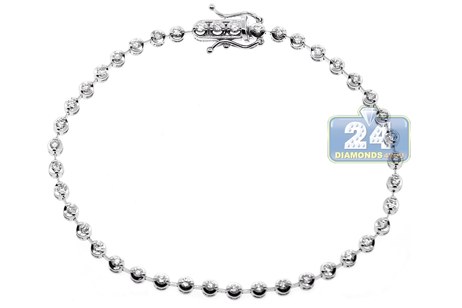 14K White Gold 1.16 ct Diamond Womens Halo Tennis Bracelet