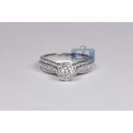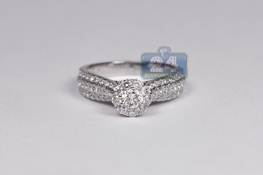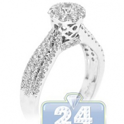 14K White Gold 1.19 ct Diamond Cluster Vintage Engagement Ring