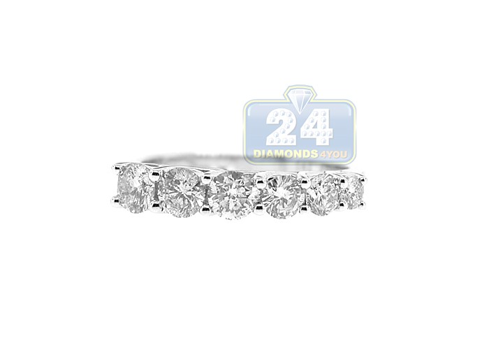 14K White Gold 1.20 ct 6 Stone Diamond Womens Anniversary Ring