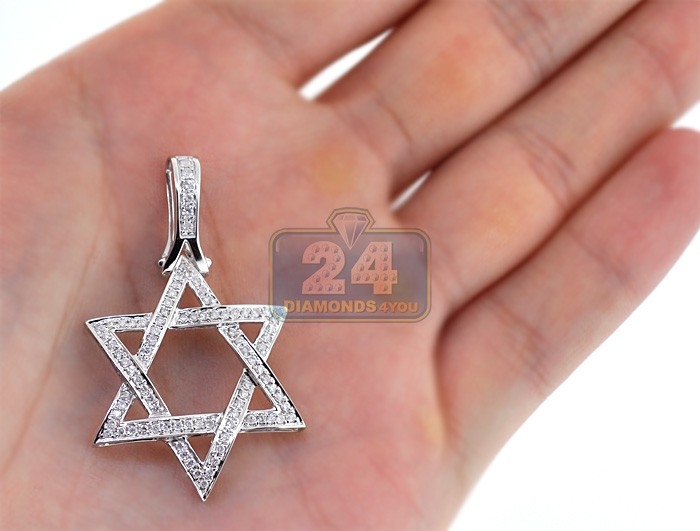 14K White Gold 1.20 ct Diamond Star of David Jewish Pendant