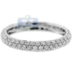An endless circle of diamonds is symbol of your eternal love! Our stunning wedding band is professionally handcrafted in high polished 14k white gold and skillfully encrusted all the way around with three rows of round cut diamonds. These are genuine brilliants, absolutely eye clean and sparkling, with G-H color and SI1-SI2 clarity. No doubt, such a gorgeous jewel is the perfect choice for a wedding or anniversary band!