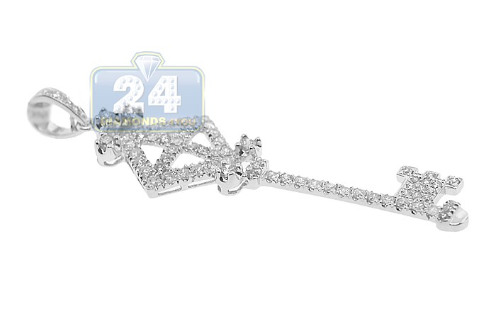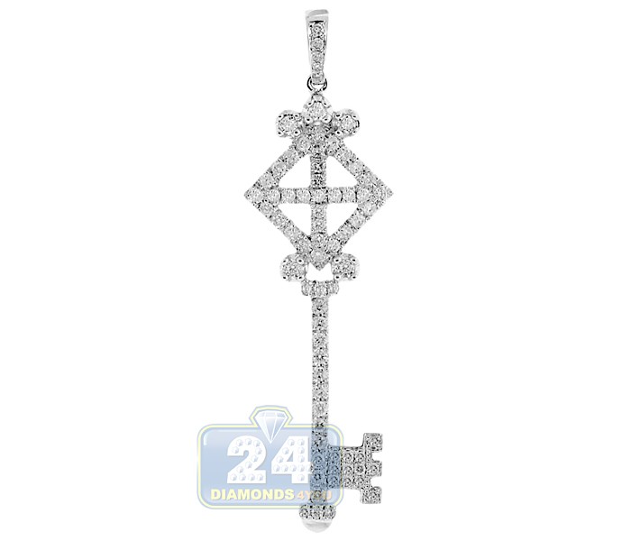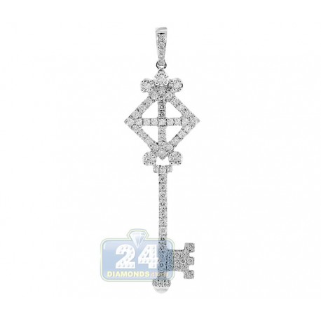 14K White Gold 1.22 ct Diamond Vintage Key Womens Pendant