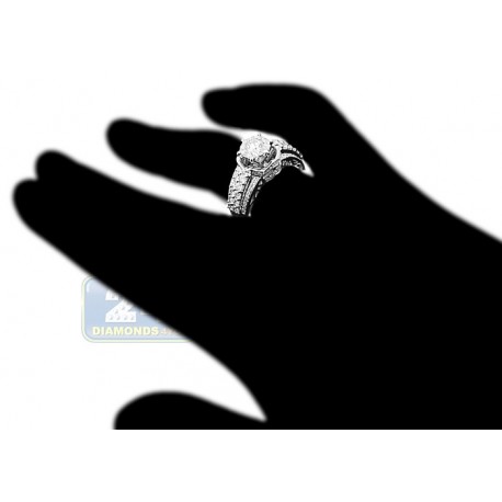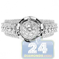 Show your sincere commitment with our gorgeous engagement ring! It captures the entire attention with the dazzling and never ending shine! Absolutely amazing design features genuine icy white round diamonds professionally handset as a cluster in the center crown. Dazzling brilliants decorate the antique styled shank as well. The actual setting is professionally crafted in cool 14k white gold with shiny polished finish.
