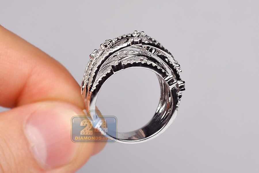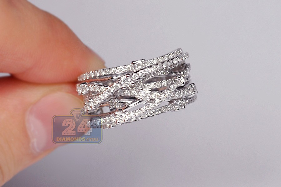 14K White Gold 1.25 ct Diamond Womens Highway Ring