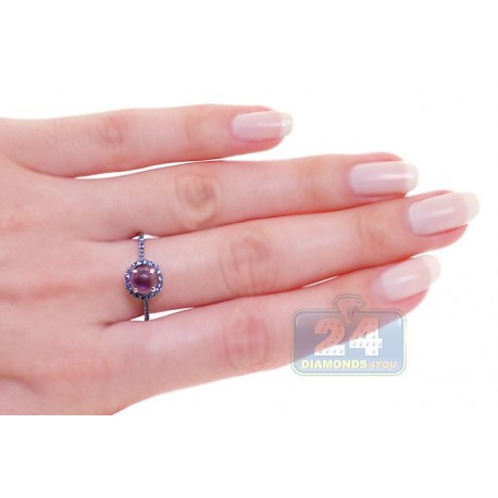 14K White Gold 1.26 ct Amethyst Sapphire Halo Womens Ring