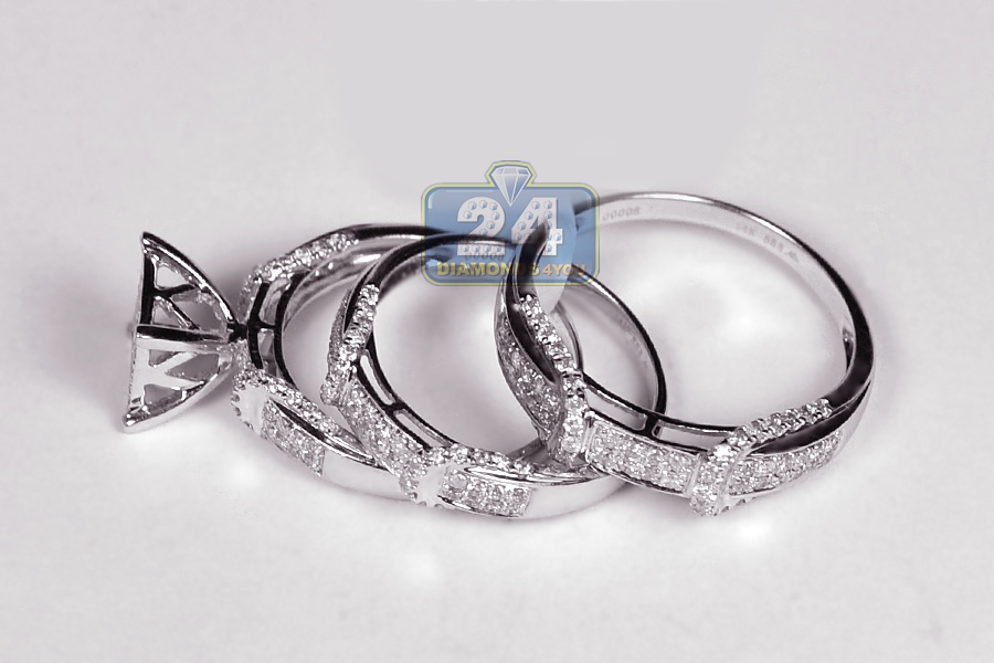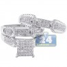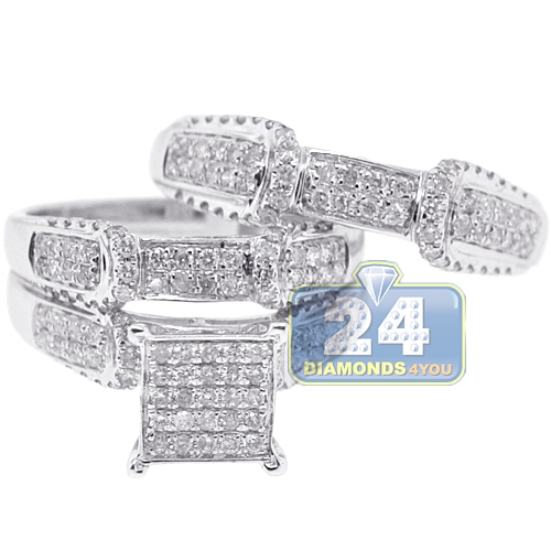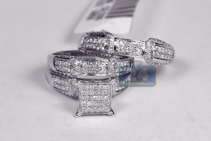 14K White Gold 1.27 ct Diamond Pave Wedding 3-Ring Set