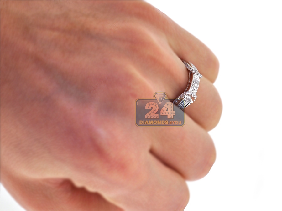 Impress with a luster and exceptional taste by choosing this sparkling diamond bridal set! Whatever you plan to wear an elegant dress and formal tuxedo on that special wedding day, or decided to stay with the informal outfit, our splendid set would be a good fit! It includes women's engagement and wedding rings as well as men's wedding band. Professionally handmade of gleaming 14k white gold with the perfect finish, and handset with white round brilliants totaling 1.27 carat. With the clarity of SI2 and G-H color, the diamonds are eye clean sparkling. You are looking at fantastic combination of the great value and affordable price!