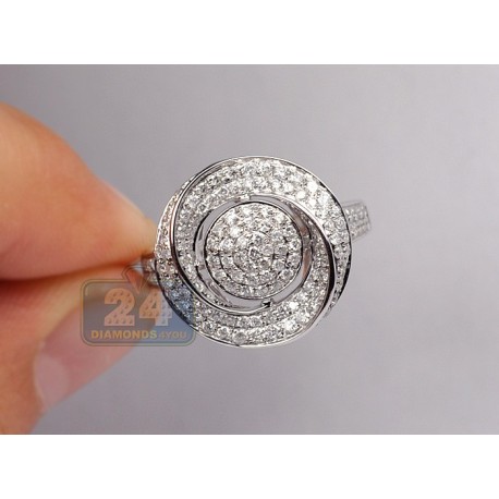 14K White Gold 1.27 ct Diamond Womens Round Flower Ring