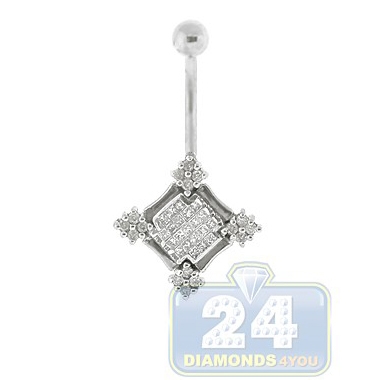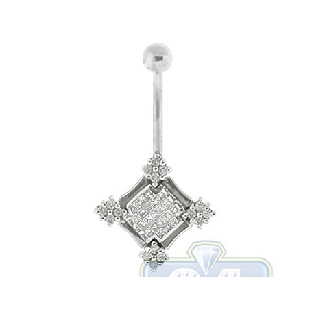 14K White Gold 1.30 ct Diamond Square Vintage Womens Belly Ring