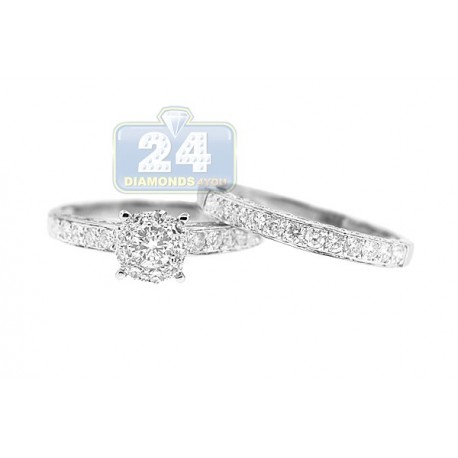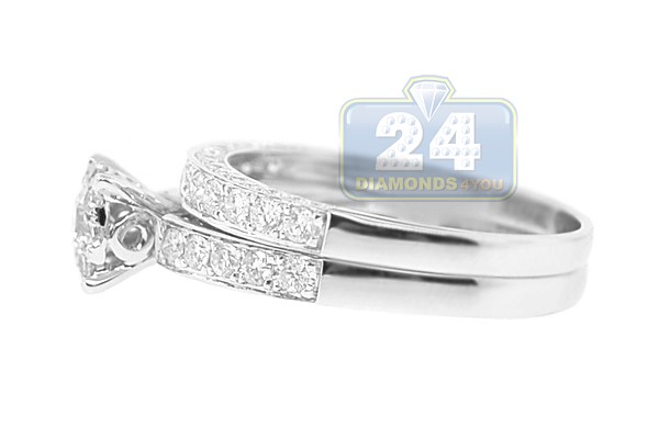 14K White Gold 1.31 ct Diamond Engagement Wedding Rings Set