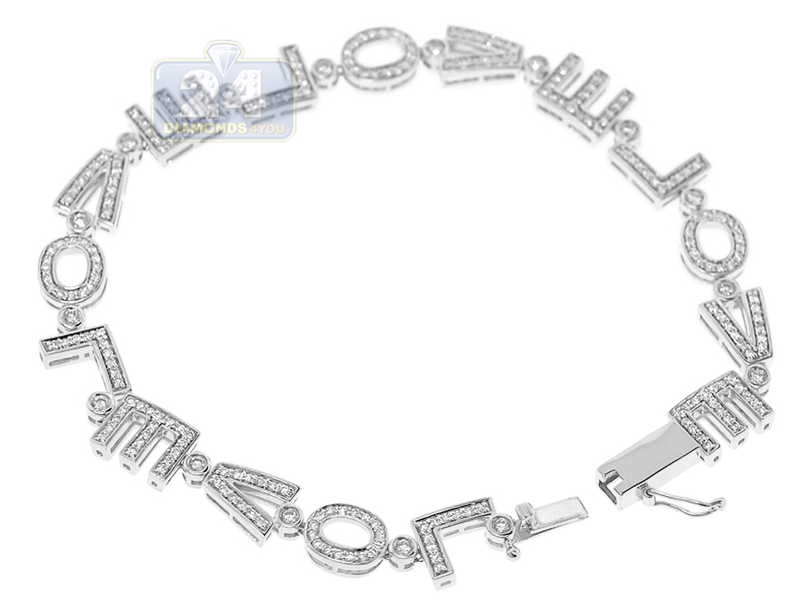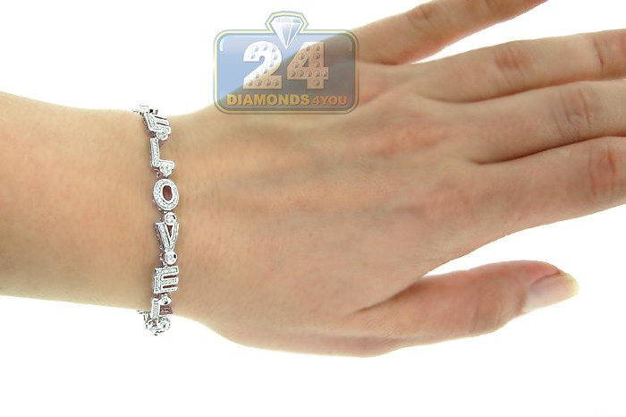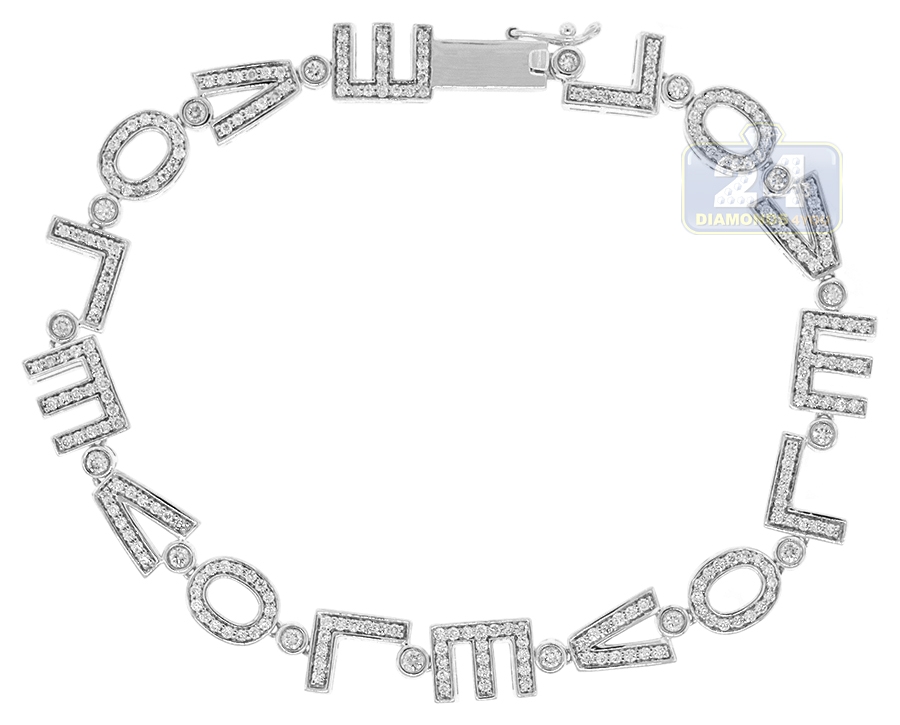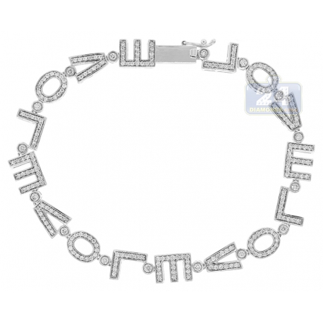 14K White Gold 1.40 ct Diamond LOVE Sign Womens Bracelet