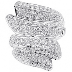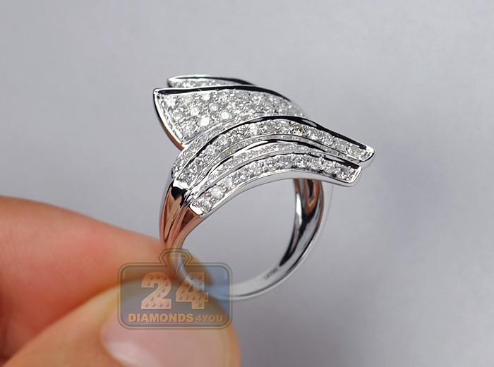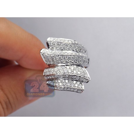 14K White Gold 1.32 ct Diamond Womens Large Wave Ring