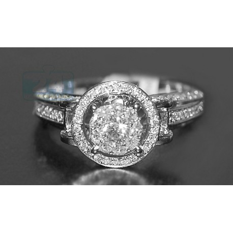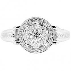 14K White Gold 1.35 ct Diamond Cluster Antique Engagement Ring