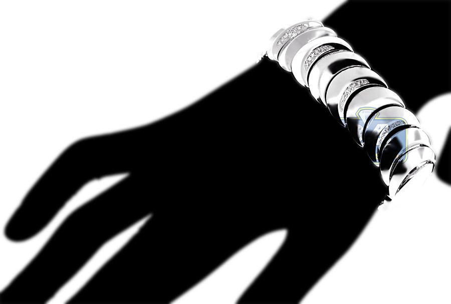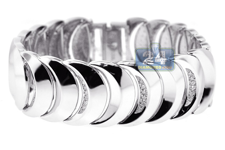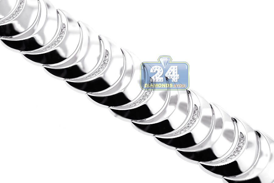 Amaze her wrist in sparkling style of this diamond moon bracelet! Professionally crafted in cool 14 karat white gold, the links feature highly polished ultra smooth look. Our women's diamond bracelet is accented with 1.37 carat of icy white round brilliant-cut natural diamonds. It also has length of 8 inches, width of 23 mm; and secured by a comfortable jewelry clasp. This diamond link bracelet is perfect for the woman who appreciates glamour and sophistication!
