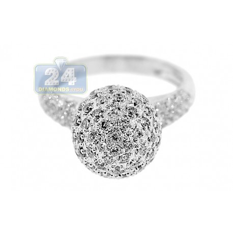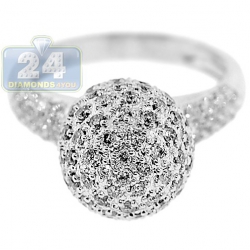 14K White Gold 1.40 ct Diamond Cluster Womens Ball Ring