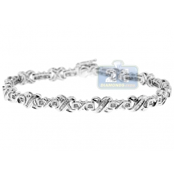 14K White Gold 1.40 ct Diamond X Link Womens Bracelet