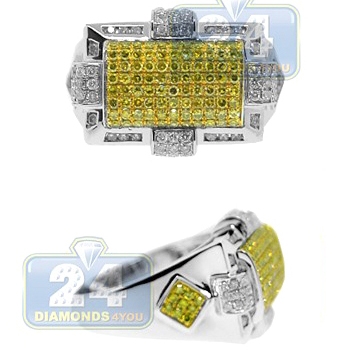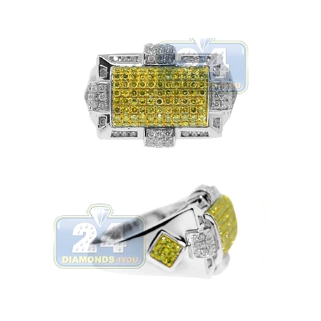 14K White Gold 1.40 ct Yellow Diamond Mens Signet Ring
