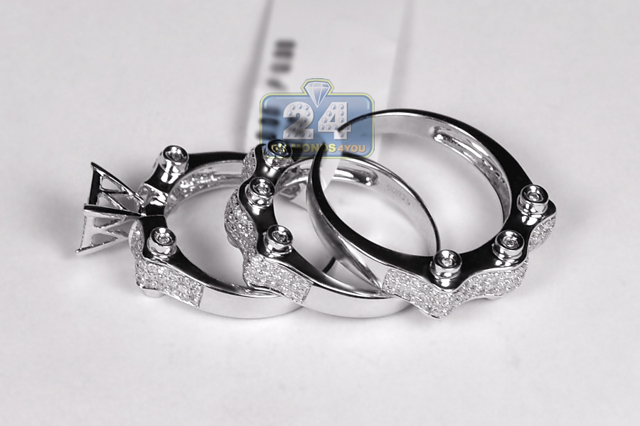 14K White Gold 1.43 ct Diamond Wedding Three Ring Set