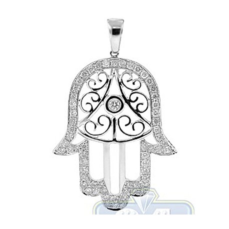 14K White Gold 1.44 ct Diamond Filigree Hamsa Hand Pendant