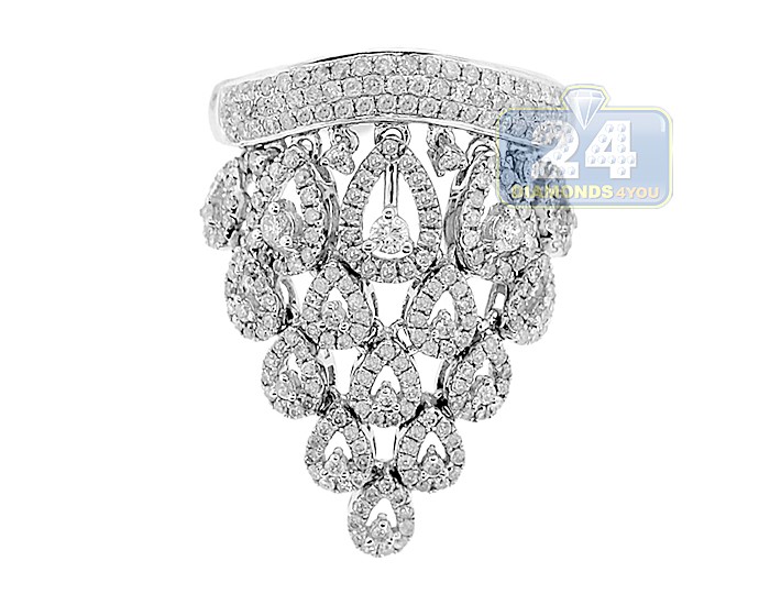 14K White Gold 1.44 ct Diamond Womens Teardrop Ring