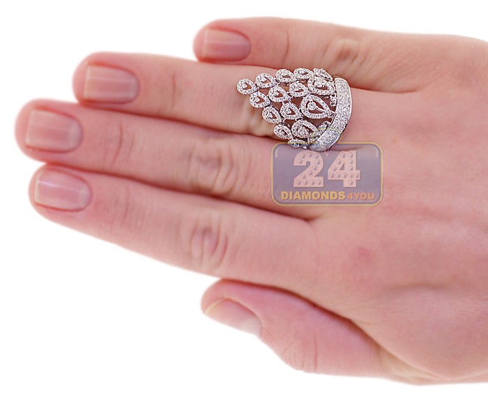 Our antique styled women's ring features a fancy teardrop design encrusted with lots of precious stones. The ring is professionally crafted in gleaming 14k white gold with high polished finish that radiates with sheer beauty! All diamonds are gorgeously eye clean and sparkling, with G-H color and SI1-SI2 clarity, and weighting 1.44 carat in total. What a wonderful gift for yourself or someone special!