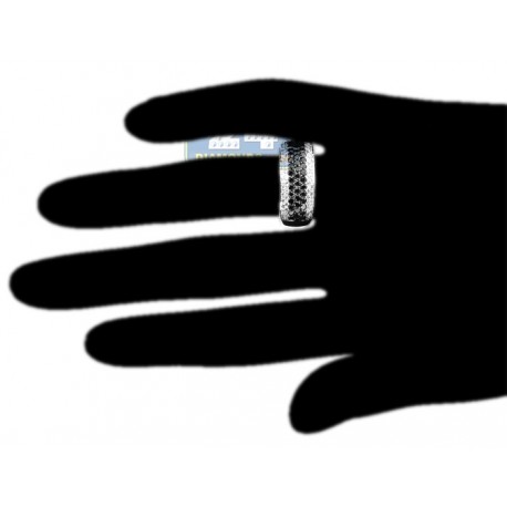 Ultra stylish and contrasting, this women's ring will look amazing with any outfit! It features a classic round band design gorgeously accented with seven rows of mixed black and white diamonds weighting 1.50 carat. Impressive center is shimmering with three rows of black stones to add a fancy vibe to the jewel! All white stones are beautifully eye clean and sparkling, have G-H color and SI1-SI2 clarity. What a great mix of colors, materials and exceptional craftsmanship!