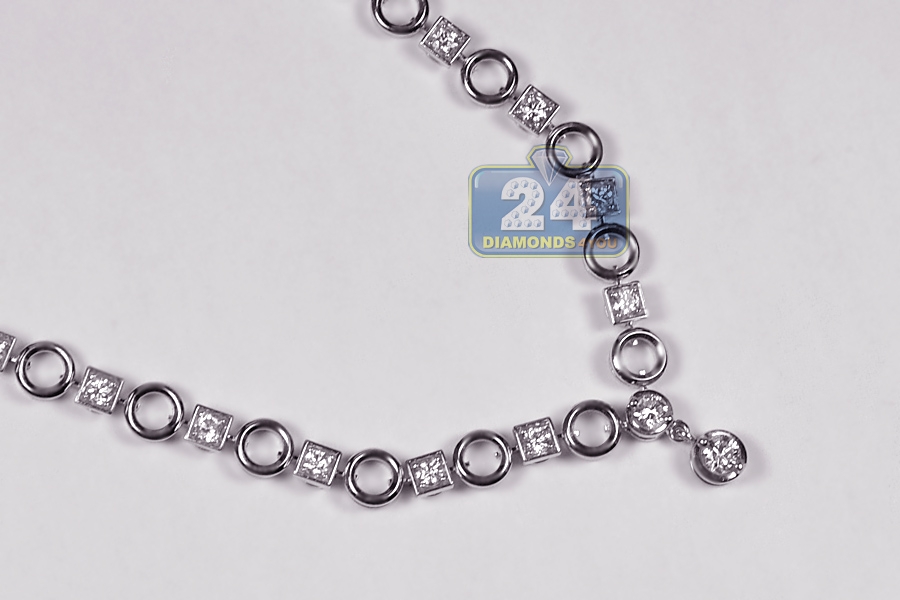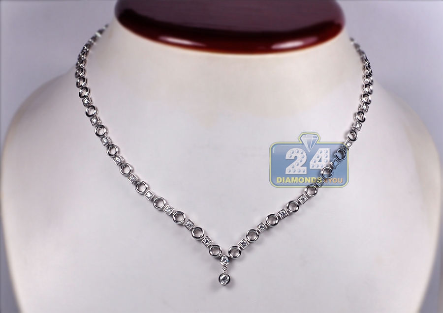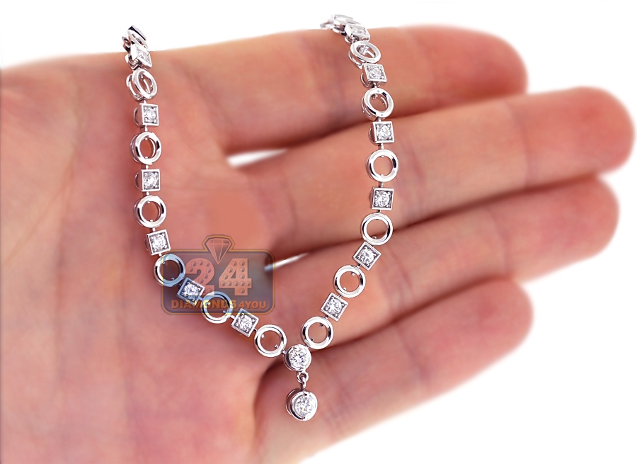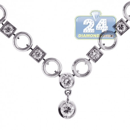 Our diamond Y shape drop necklace is sure to have all eyes on you! It is expertly handmade of lustrous 14k white gold with precisely polished smooth finish. The round and square halo links are accented with sparkling white genuine diamonds, all totaling 1.58 carat. Women's lariat necklace measures 16.75 inches in length around the neck, 5.5 mm in width of links; and secured by a comfortable box clasp. Make an unforgettable statement wearing the diamond drop necklace!