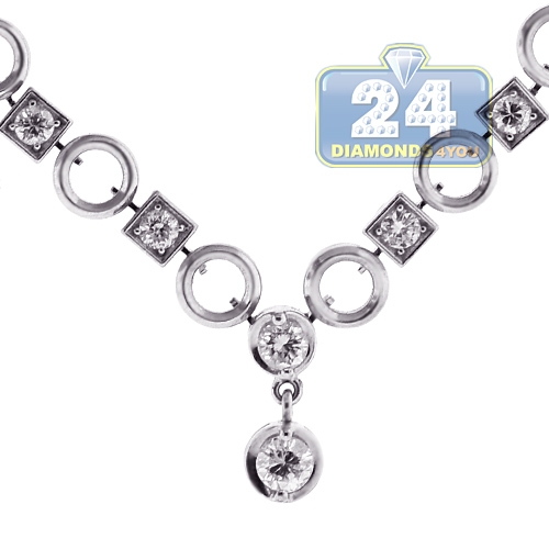 14K White Gold 1.58 ct Diamond Womens Drop Y Shape Necklace