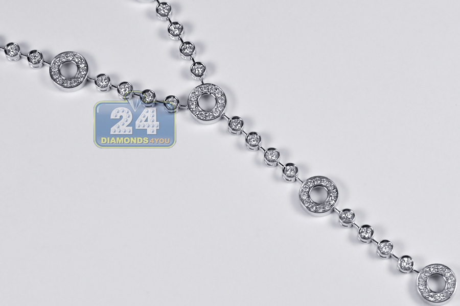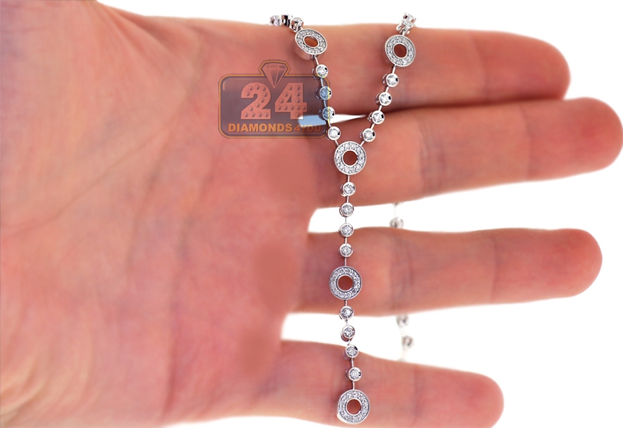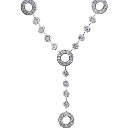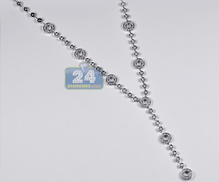 14K White Gold 1.62 ct Diamond Station Y Shape Necklace 16 Inches