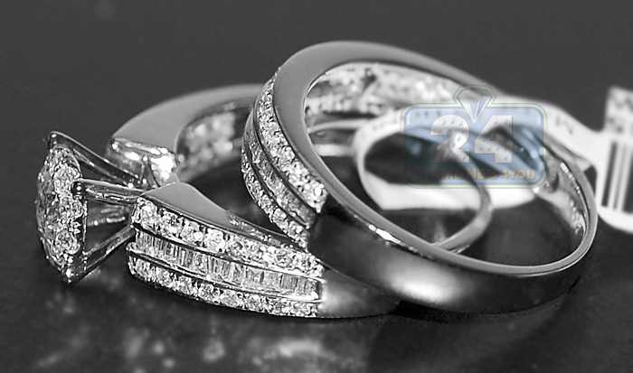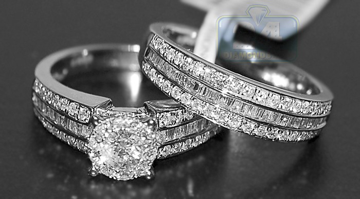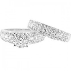 14K White Gold 1.64 ct Diamond Engagement Wedding Rings Set