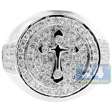 14K White Gold 1.68 ct Diamond Mens Cross Ring