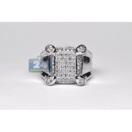 14K White Gold 1.70 ct Diamond Mens Square Ring