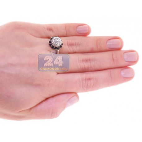 This women's ring is truly special! It features an unique sunflower cluster design and showcases mixed icy white and mysterious black diamonds. The impressive diamond ball cluster in the center is artfully accented with white brilliants and surrounded by genuine black stones designed like real petals. Elegance, style and sophistication are the right words to describe this amazing ring!