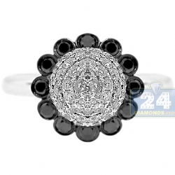 14K White Gold 1.75 ct Black Diamond Sunflower Womens Ring