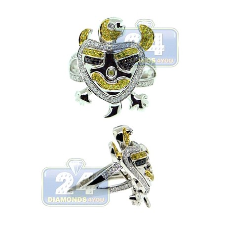 14K White Gold 1.77 ct MultiColored Diamond Turtle Mens Ring