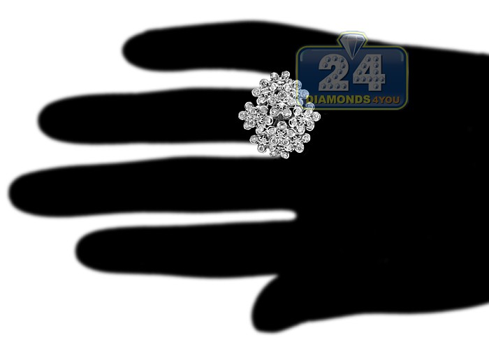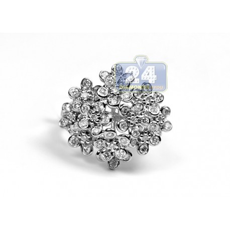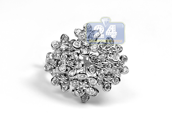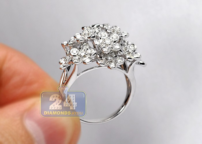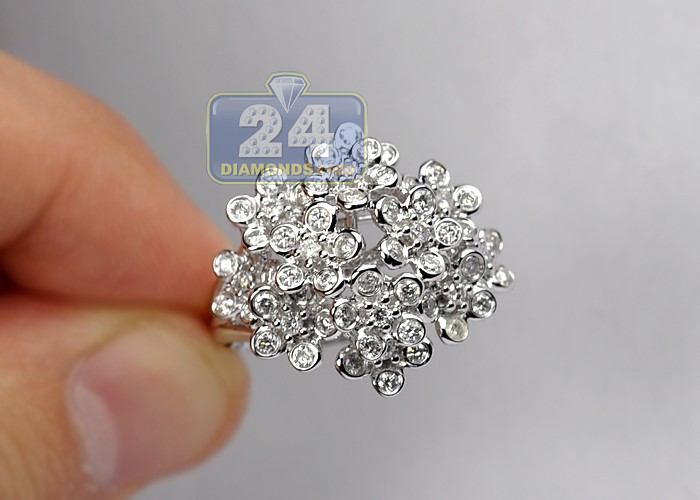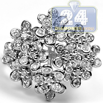 14K White Gold 1.78 ct Diamond Womens Flower Design Ring