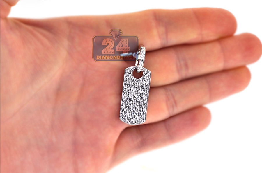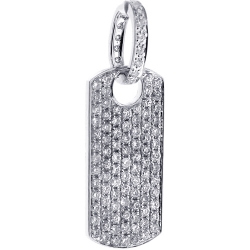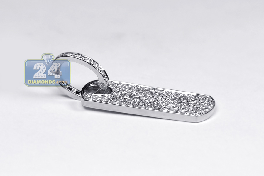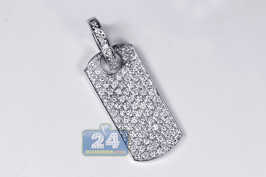 14K White Gold 1.79 ct Full Diamond Dog Tag Mens Pendant