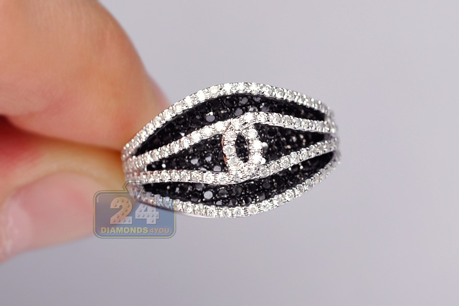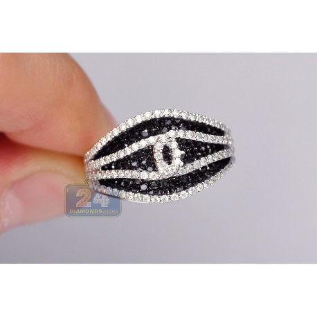 Beautifully sparkling with two tone stones, our statement-making band is a real treasure! It is masterly crafted from lustrous 14k white gold, has highly polished finish and skillfully accented with icy white and black round cut diamonds weighting 1.80 carat in total. What a stylish piece for a special evening!