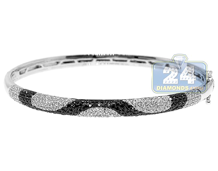 14K White Gold 1.80 ct Black Diamond Womens Bangle Bracelet