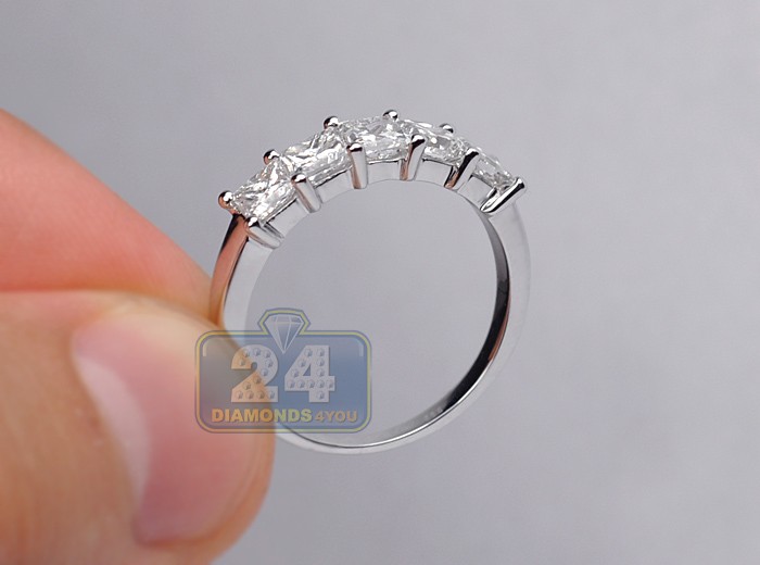 14K White Gold 1.83 ct 5 Stone Princess Cut Diamond Womens Ring