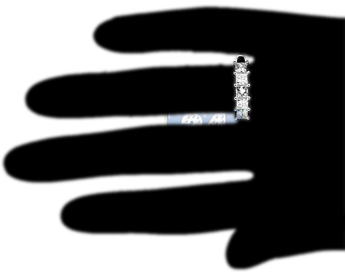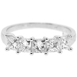 Look at this charming anniversary ring! It is so simple and gorgeous! The ring is expertly handmade of lustrous 14k white gold with shiny polish, and beautifully accented with five white princess cut diamonds weighting 1.83 carat. Each stone is sparkling and eye clean, with SI1-SI2 clarity and G-H color. Amaze your finger with such a stunning symbol of love!