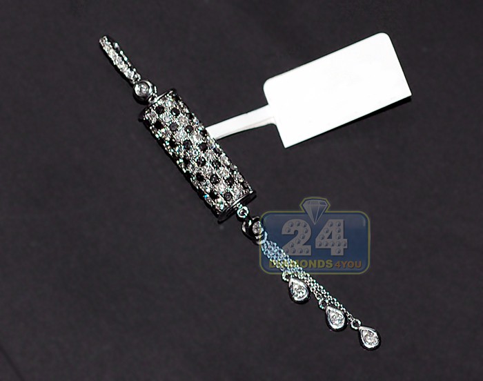 This uniquely-designed dangling bar pendant features the sparkle of icy white and enhanced black round-cut natural diamonds of 1.84 carat. This fine piece is gorgeously crafted in lustrous 14k white gold with highly polished smooth finish. Our women's diamond pendant measures 72 mm in hanging length and 9 mm in width. The diamond drop pendant is a perfect addition to your most treasured jewelry collection!
