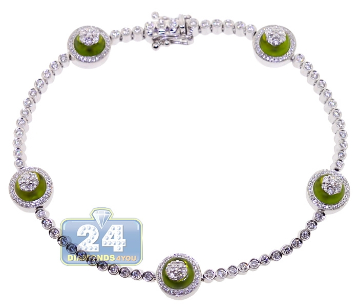 Every religion has its own symbol! One of these symbols we can find in almost every culture and faith for thousands of years... it is the figure of eye! Turkish evil eye bead bracelets are the most common talisman to stop the evil eye. Evil eye bead gives happiness to the friends and the beloved ones. This diamond tennis bracelet is artfully created from cool 14 karat white gold, and high-polished for ultra smooth finish. Evil eye links are covered with elegant green enamel. The piece is encrusted with lustrous white round brilliant-cut genuine diamonds, all totaling 1.85 carat. This women's evil eye bracelet features 7.25 inches in length, 9 mm in width; and closed by comfortable box clasp. Add some spiritual personality to your look with this white gold bracelet!