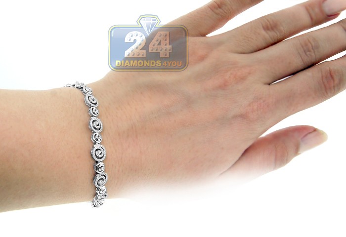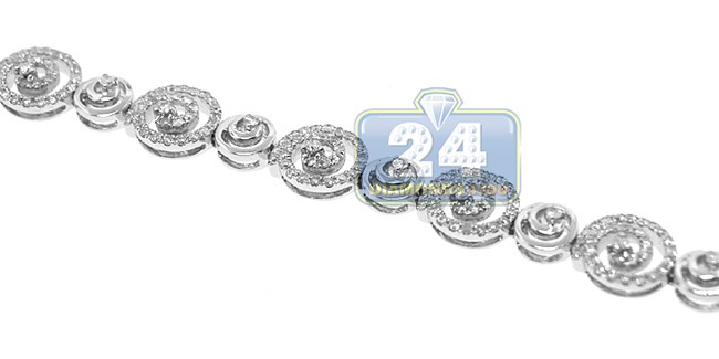 14K White Gold 1.85 ct Diamond Swirl Link Womens Bracelet
