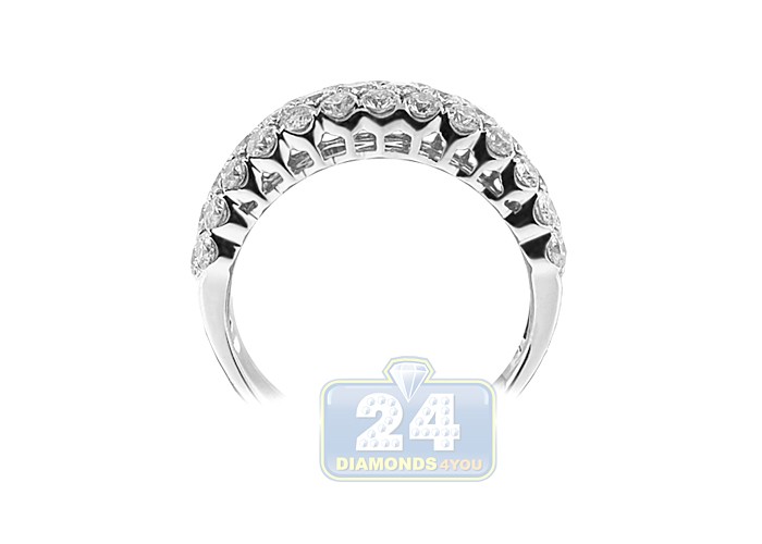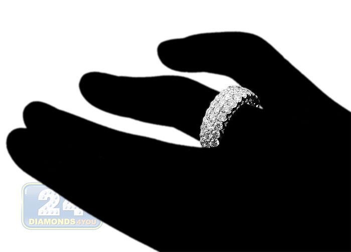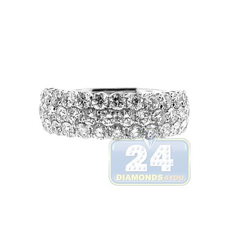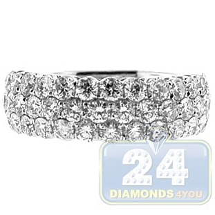 14K White Gold 1.86 ct 3 Row Diamond Womens Band Ring