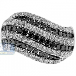 Our gorgeous two tone band features a timeless wave shaped design that will be in fashion forever! The ring is skillfully handmade of cool 14k white gold, has high polished finish, and masterly encrusted with three rows of genuine black and four rows of white round cut diamonds weighting 1.88 carat. Sparkling, mysterious, stylish.... such a glamorous accessory for a night out!